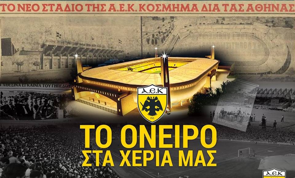 “Η ΠΑΕ ΑΕΚ και η Δικέφαλος Κατασκευαστική ΑΕ ανακοινώνουν με επισημότητα και υπερηφάνεια την έκδοση της οικοδομικής άδειας για την κατασκευή του γηπέδου μας στη Νέα Φιλαδέλφεια!