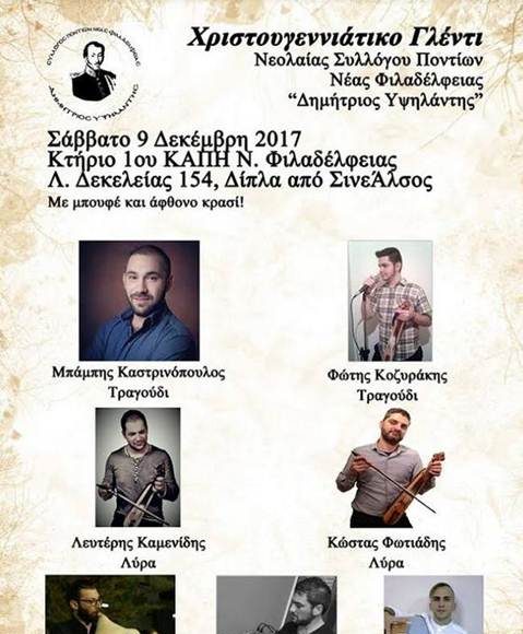 Η Νεολαία του Συλλόγου Ποντίων Νέας Φιλαδέλφειας σας προσκαλεί στο χριστουγεννιάτικο γλέντι που διοργανώνει για να αποχαιρετήσουμε μαζί το 2017!