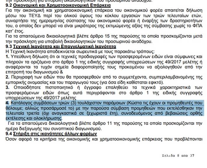 «Κατάλογος συμβάσεων τριών (3) τουλάχιστον παρόμοιων (Κώστα τις έχουν οι προμηθευτές που θέλουμε; αλλιώς προσάρμοσέ το) με την παρούσα σύμβαση προμηθειών που εκτελέσθηκαν την τελευταία τριετία (όχι αναγκαστικά σε ξεχωριστά έτη), συνοδευόμενος από βεβαιώσεις ορθής εκτέλεσης και ολοκλήρωσης».