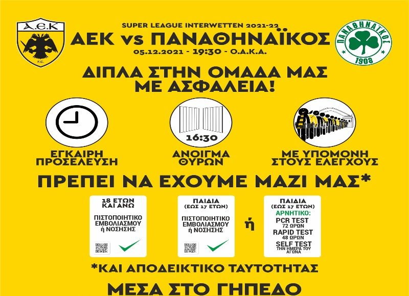 Κανονικά θα διεξαχθεί το αθηναϊκό ντέρμπι ΑΕΚ – ΠΑΟ