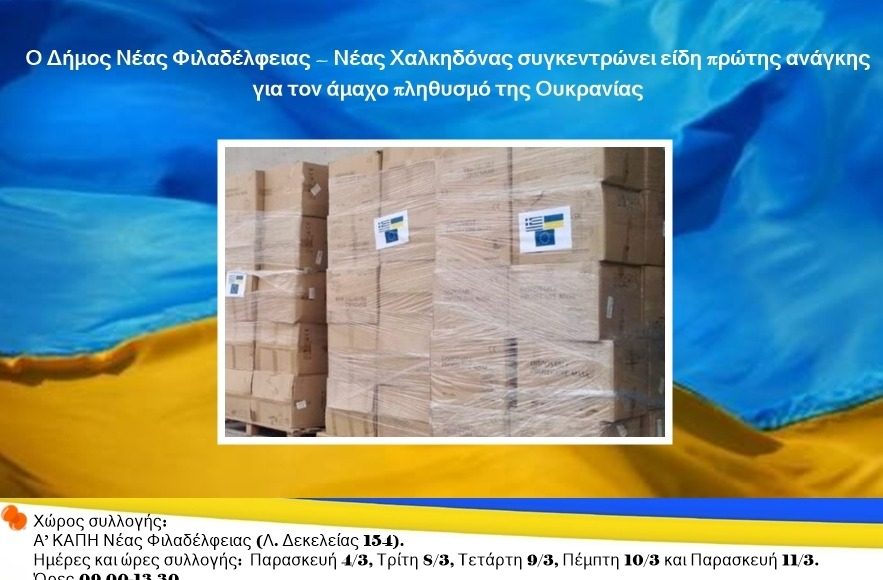 Την Παρασκευή 04 Μαρτίου ξεκινάμε να συλλέγουμε είδη πρώτης ανάγκης για τον ουκρανικό λαό.