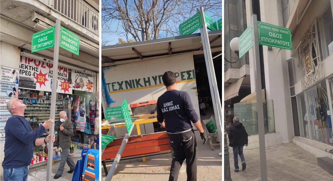 Νέες πινακίδες οδών τοποθετούνται στο κέντρο της Νέας Ιωνίας