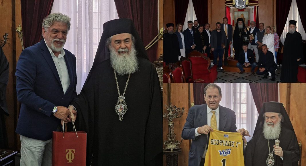 Το πρωί σήμερα, 4η Απριλίου, η Αυτού Θειοτάτη Μακαριότης, ο Πατριάρχης της Αγίας Πόλεως Ιερουσαλήμ και πάσης Παλαιστίνης, κ.κ. Θεόφιλος Γ΄, εδέχθη στο Πατριαρχείο Ιεροσολύμων, τον διοικητικό ηγέτη της ΑΕΚ BC, κ. Μάκη Αγγελόπουλο, τον οποίο συνόδευε αντιπροσωπεία της ΑΕΚ BC και ο Δήμαρχος Νέας Φιλαδέλφειας/Νέας Χαλκηδόνας κ. Γιάννης Βούρος.