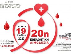 Η 20η Εθελοντική Αιμοδοσία του Δήμου θα πραγματοποιηθεί την Τετάρτη 19 Ιουλίου 2023 και ώρες 14:00 έως 19:00 στο Π.Π.Ι.Ε.Δ. (Λ. Δεκελείας 152, Νέα Φιλαδέλφεια).