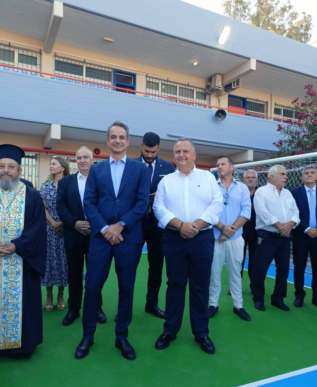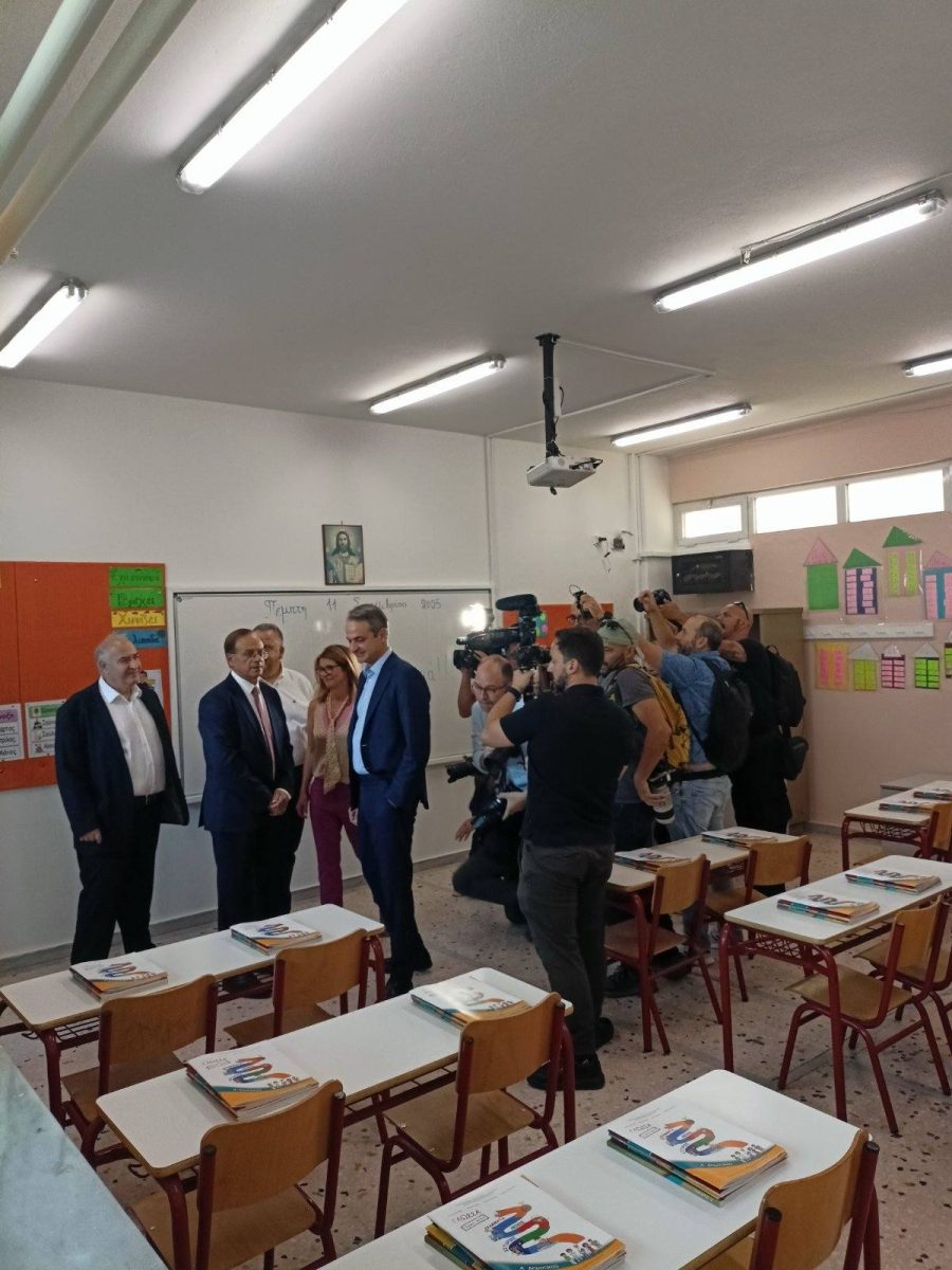 Ο κ. Μητσοτάκης, συνοδευόμενος από τον Δήμαρχο Νέας Φιλαδέλφειας – Νέας Χαλκηδόνας Γιάννη Τομπούλογλου, βρέθηκε στο σχολείο που πριν λίγους μήνες αποτέλεσε αφετηρία για την εφαρμογή του κυβερνητικού προγράμματος «ΜΑΡΙΕΤΑ ΓΙΑΝΝΑΚΟΥ», το οποίο στοχεύει στην αναβάθμιση και τον εξωραϊσμό σχολικών κτιρίων σε όλη τη χώρα.
