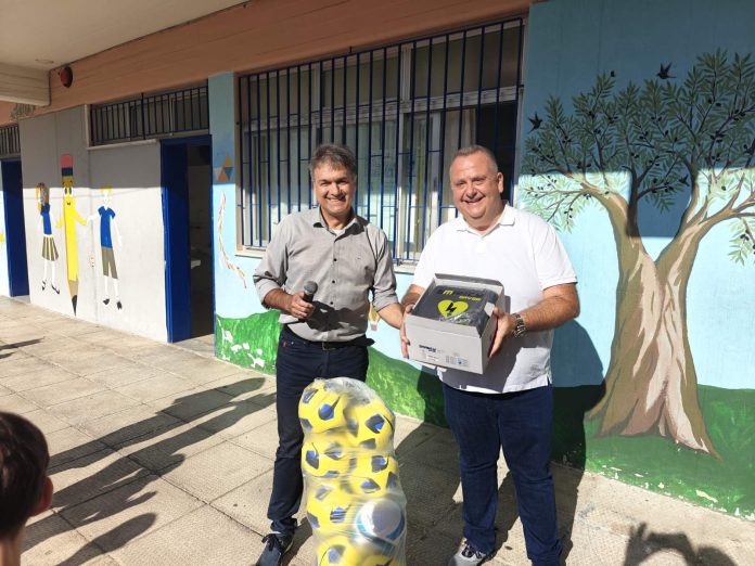 Η προσφορά περιλάμβανε έναν απινιδωτή – ένα πολύτιμο ιατρικό εργαλείο που μπορεί να σώσει ζωές σε περίπτωση έκτακτης ανάγκης – καθώς και μπάλες ποδοσφαίρου για τις αθλητικές δραστηριότητες των μαθητών.