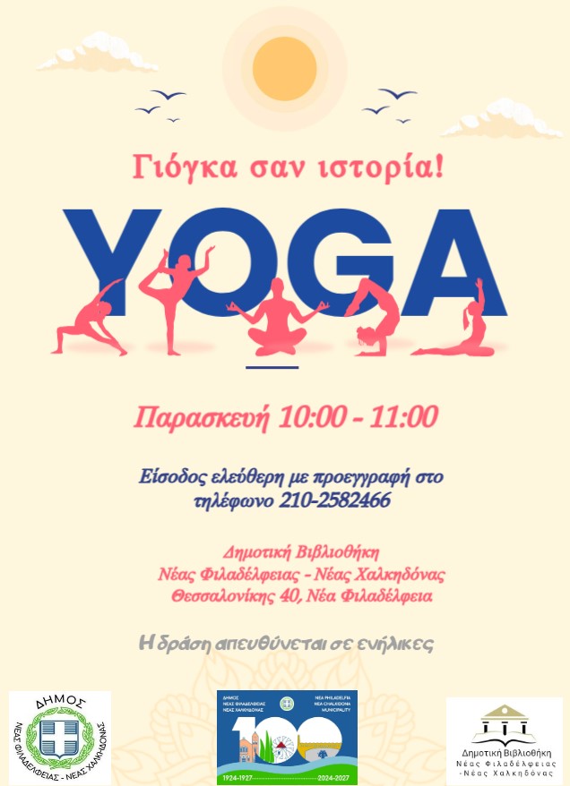 Η Δημοτική Βιβλιοθήκη Νέας Φιλαδέλφειας – Νέας Χαλκηδόνας εγκαινιάζει μια νέα δημιουργική δράση για ενήλικες με τίτλο «Γιόγκα σαν ιστορία!», σε συνεργασία με τη δασκάλα γιόγκα Άννα – Μαρία Λούτατ.
