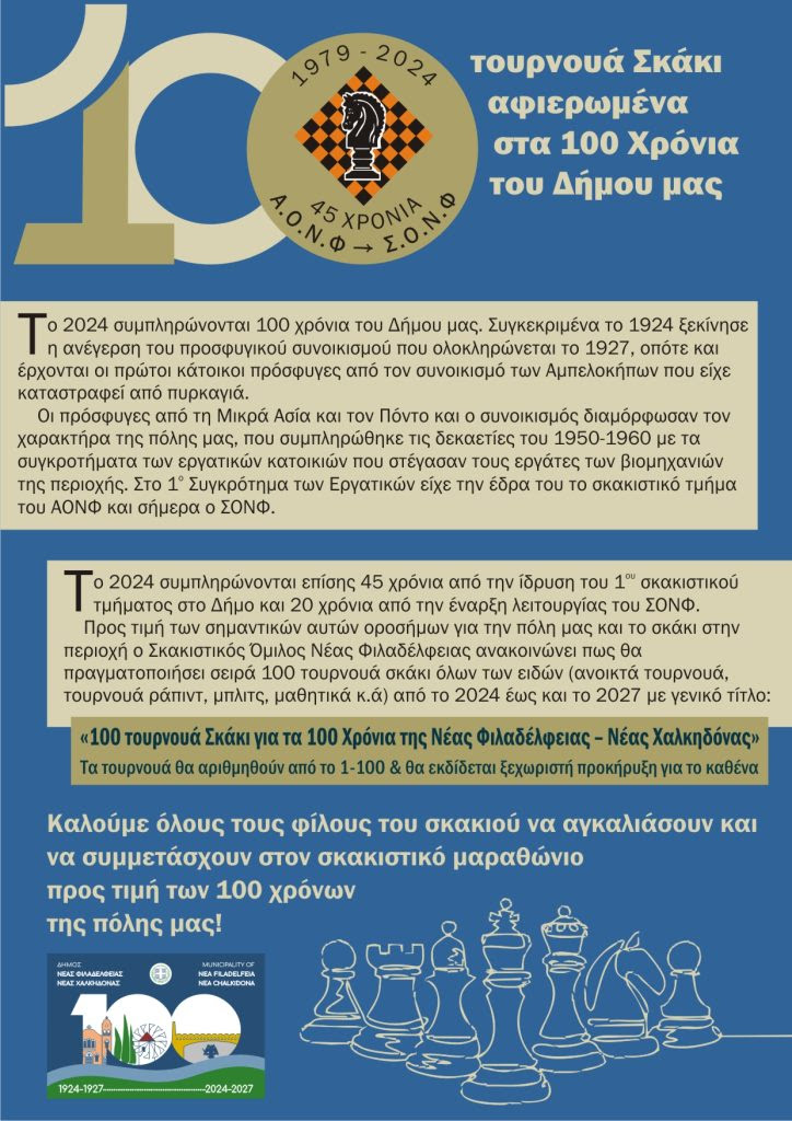 Ξεκίνησε την Παρασκευή 31 Οκτωβρίου το 16ο φθινοπωρινό Όπεν – 16ο Κύπελλο “Σπύρος Λοβέρδος” του ΣΟΝΦ με τη συμμετοχή συνολικά 32 σκακιστών και σκακιστριών από 10 συλλόγους της Αττικής. Πρόκειται για το 30ο Τουρνουά της πρωτοβουλίας του ΣΟΝΦ “100 τουρνουά Σκάκι για τα 100 χρόνια της Νέας Φιλαδέλφειας – Νέας Χαλκηδόνας” και είναι το πρώτο οπεν που διοργανώνεται χωρίς την παρουσία, τις συμβουλές και τη βοήθεια του αείμνηστου προέδρου μας Οδυσσέα Βαζελάκη.