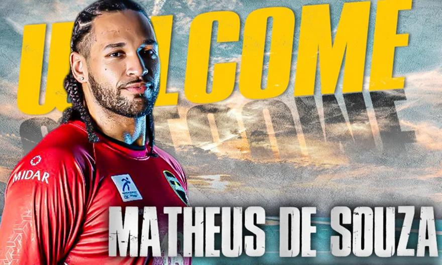 Ο Ματέους ντε Σόουζα, γνωστός και ως “RJ” Ματέους, είναι 26 ετών και αγωνίζεται στη θέση του τερματοφύλακα. Έχει ύψος 1.90μ. και έρχεται στην ΑΕΚ με παραστάσεις από το κορυφαίο επίπεδο του βραζιλιάνικου χάντμπολ.