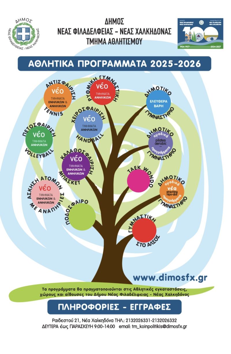 Οι εγγραφές για τα Νέα Προγράμματα Μαζικής Άθλησης στον Δήμο Νέας Φιλαδέλφειας – Νέας Χαλκηδόνας πραγματοποιούνται αποκλειστικά με πλήρη φάκελο δικαιολογητικών.