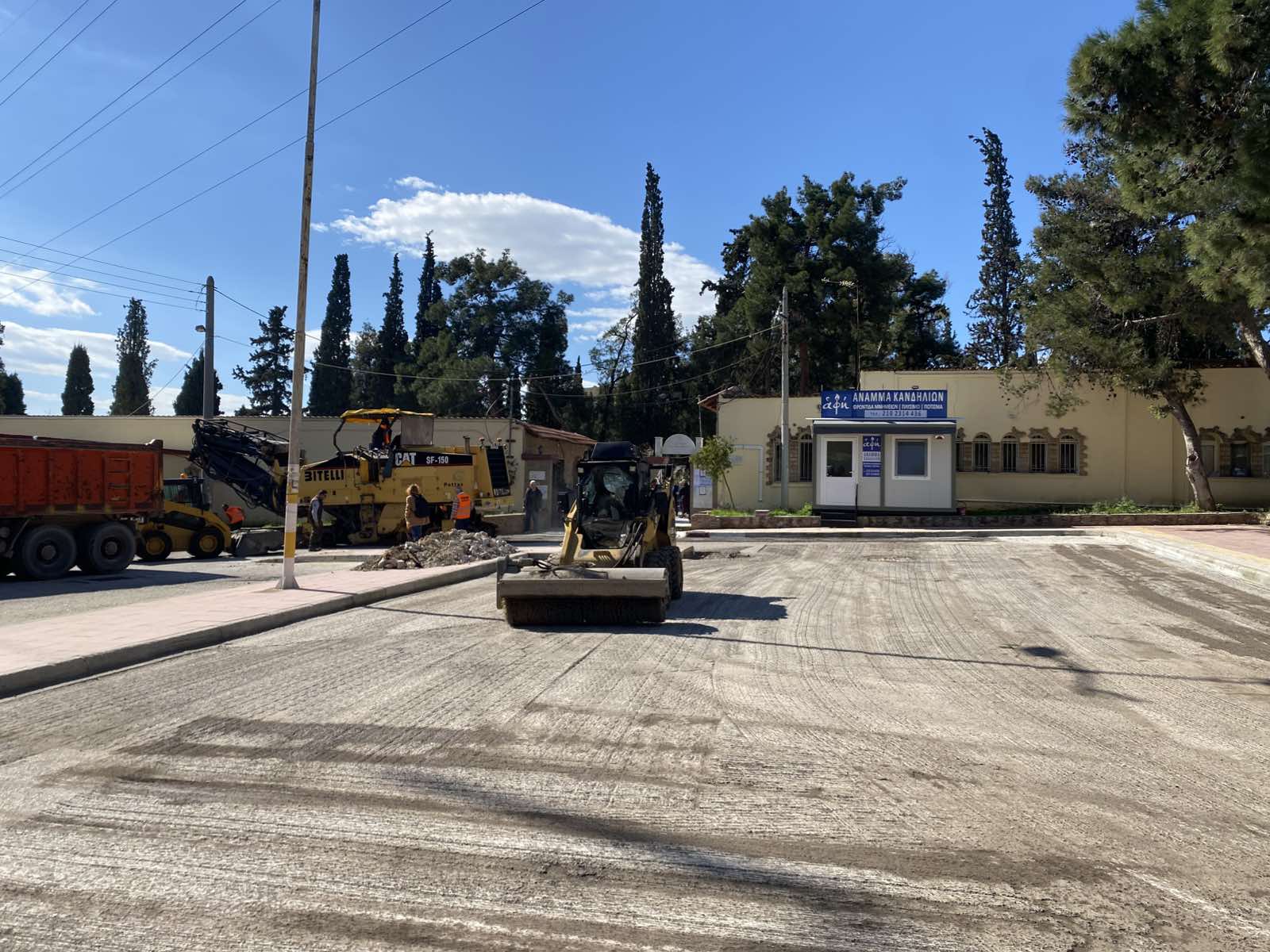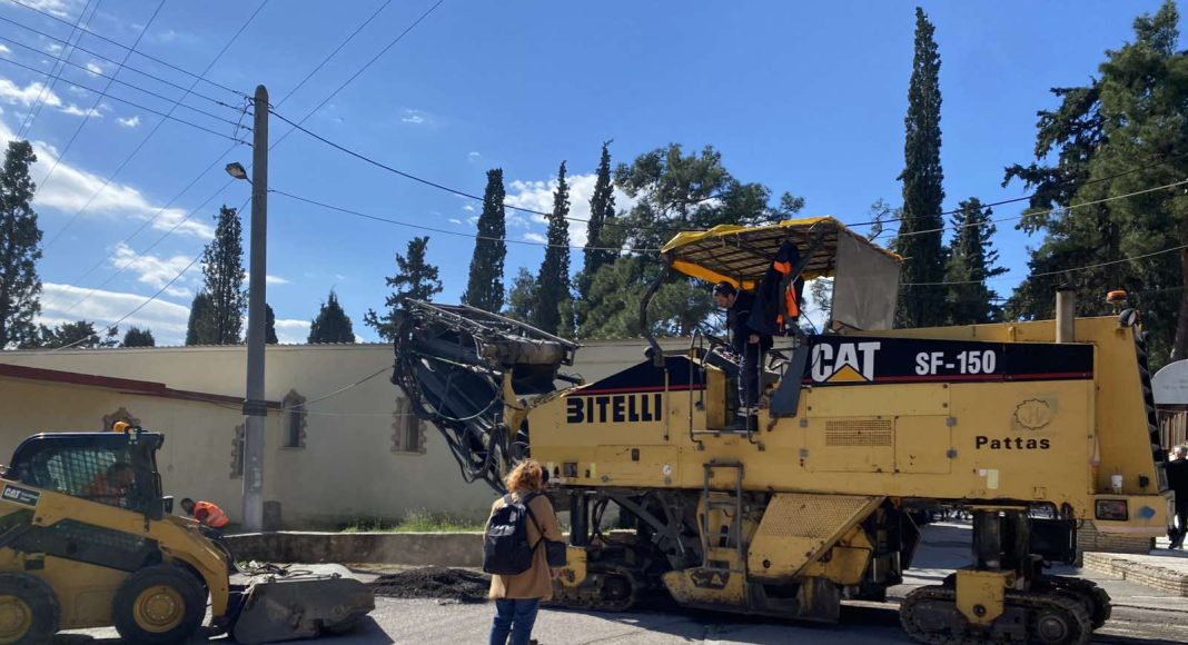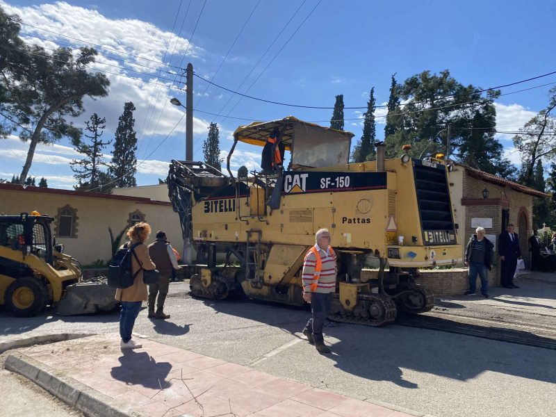 Οι εργασίες περιλαμβάνουν αποκατάσταση φθορών και νέα ασφαλτική στρώση, ώστε ο περιβάλλων χώρος να αποκτήσει καλύτερη λειτουργικότητα και αισθητική αναβάθμιση.