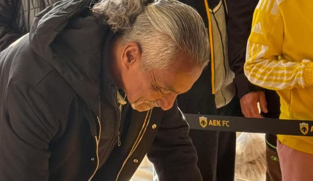 Η εικόνα του να υπογράφει φανέλες και να συνομιλεί με φιλάθλους αποτυπώνει τη διαχρονική σχέση σεβασμού και αγάπης.