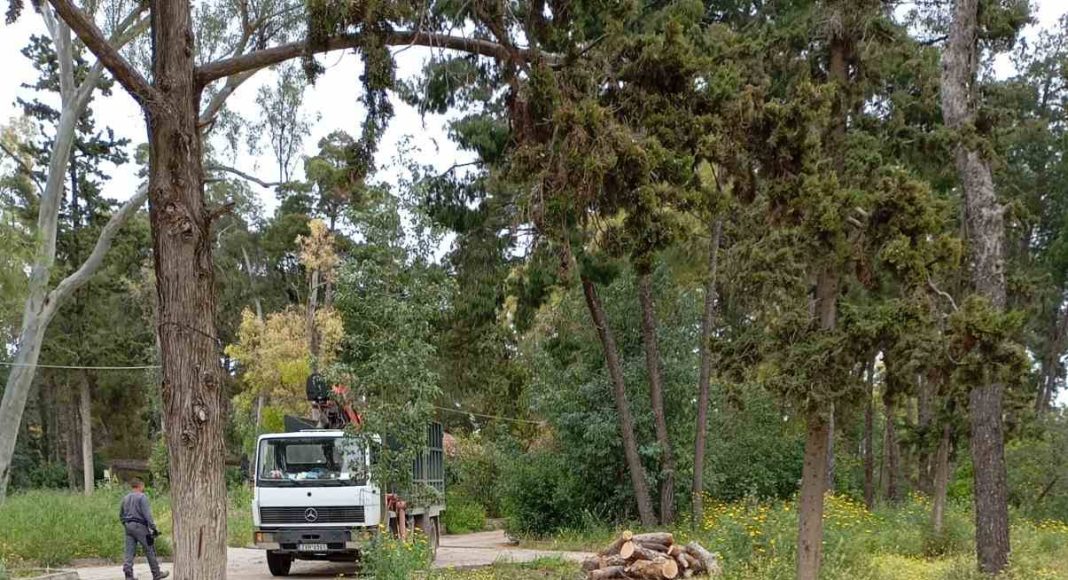 Παράλληλα, στο Άλσος Νέας Φιλαδέλφειας πραγματοποιήθηκε κοπή ξερών δέντρων.